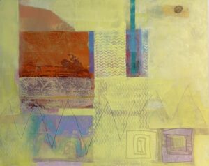 93. ‘Staircase’ mixed media on wooden panel 40cm x 40cm – Framed